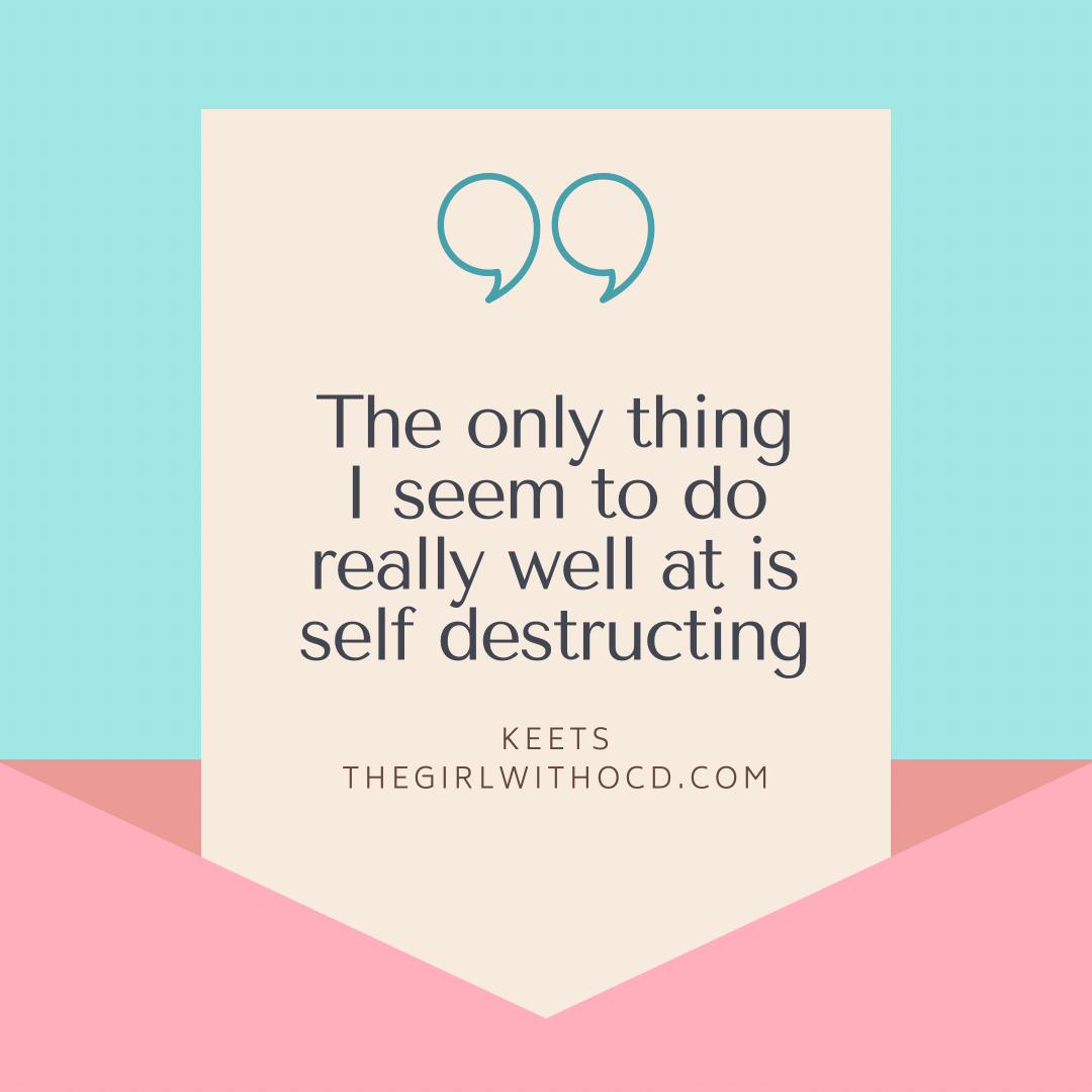 I want to destroy that relationship with OCD. I am exhausted from destroying myself so much and it’s overwhelmingly distressing to push those close to me away because I want them to dislike me because I’m in that destructive mode of not liking myself.